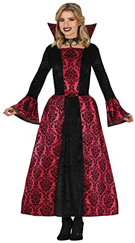FIESTAS GUIRCA Costume de vampire glamour - Robe de comtesse vampire rouge et noire Déguisement d'Halloween pour femme Taille 42-44 L