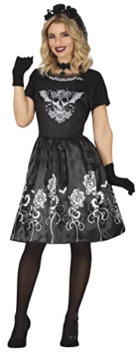 FIESTAS GUIRCA Costume de Danseuse Gothique - Robe Noire Crânes et Roses Déguisement d'Halloween pour Femme Taille 42-44 L