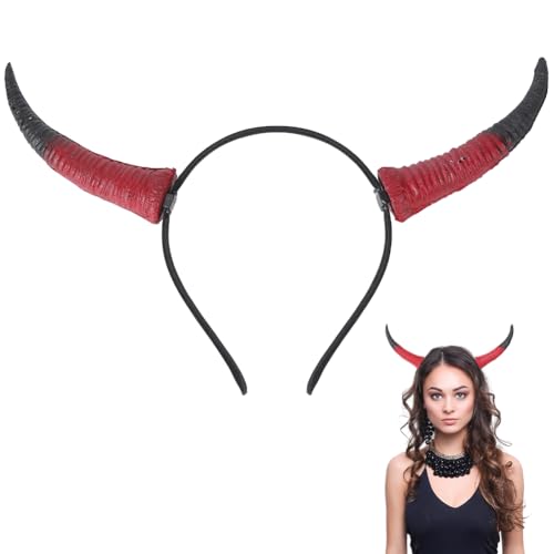 CABODYALS Serre Tête en Corne Rouge et Noire Style Gothique Diable en Similicuir Accessoire de Déguisement pour Halloween pour Femme et Homme Déguisement Cosplay Séance Photo