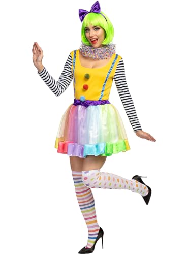 Funidelia | Déguisement clown Deluxe pour femme Clown, Cirque, Originaux et Drôle - Déguisement pour Adultes et accessoires pour Halloween, carnaval et fêtes. - Taille XS - Jaune