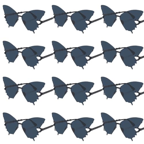 VirtuGro 12 Paires Lunettes de Soleil Femme Papillon Lunette EVJF Accessoires Photobooth Lunette Drole Hippie pour Anniversaire Lunettes de Fête Adulte Noir