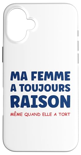 Idée Homme Drole Humour Couple ma Femme a Toujours Raison Coque pour iPhone 16 Plus
