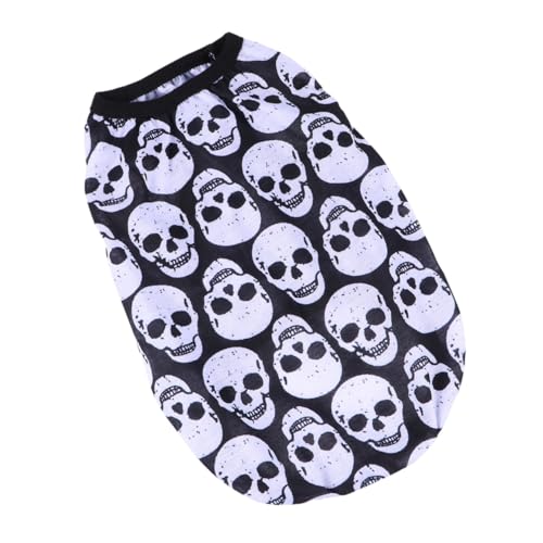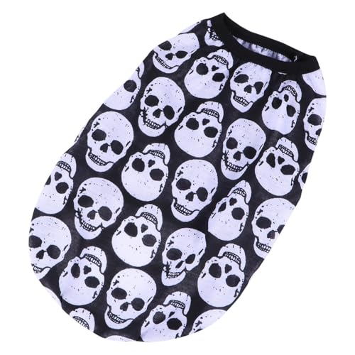 Ciieeo T-Shirt pour Animaux de Compagnie sans Manches en Coton Souple Taille S Motif Crâne Halloween Blanc, Tenue D'été Respirante et Extensible pour Chiots, Déguisement Chien Halloween
