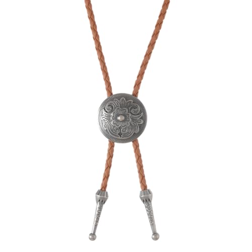 CALFOVERA Cravate Bolo Western à Motif Floral pour Homme en Cuir PU Tressé Style Argent Antique Inspirée des Costumes de Cowboy Amérindiens. Accessoire de Déguisement pour Homme et Femme