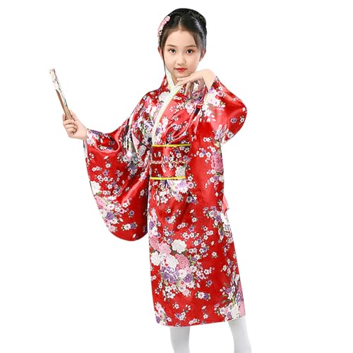 Kimono Japonais Femme, Kimono Japonais Deguisement Enfant Fille, Costume Robe Chinoise Satin Yukata Peignoir De Chambre Manche Longue Hanbok Traditionnel Carnaval Cosplay #0209A 1 2 3 4 5 6 7 8 10 ans