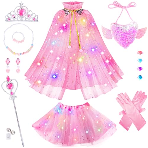 Déguisement Princesse Fille 3+ Ans, Ensemble de Cape de Princesse Illuminée Avec Couronne, Jeu de Rôle Deguisement de Princesse Filles 3-8 Ans, Jouet de Fille Cadeaux pour Halloween Noël Carnaval
