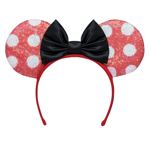 Disney Minnie Mouse – Serre-Tête Oreilles Rouges avec Nœud Noir – Accessoire de Déguisement pour Fille dès 3 Ans – Taille Unique – Produit Officiel pour Halloween, Carnaval ou Anniversaire