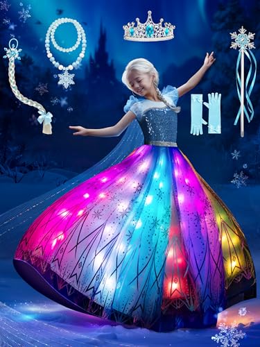 BLINGCOS Deguisement Fille, Robe Princesse Sync avec Rythme de Musique, Contrôlable par APP, Robe Lumineuse LED RGB Kit de Fête avec 6 Accessoires pour Halloween, Noël, Carnaval, 3-4 Ans