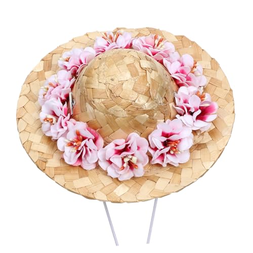 VICASKY Chapeau de Paille Tressé pour Chien Cordon Réglable Fleur Rose M Protection Solaire Mode Printemps Été Accessoire Déguisement Animaux