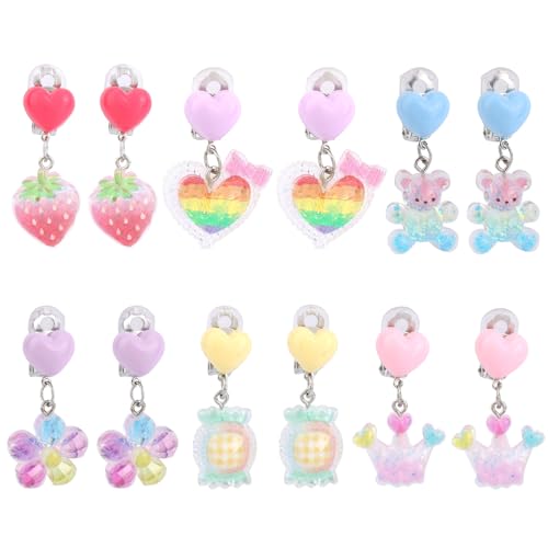 Mikovivi 6 Paires Boucles d'Oreilles à Clip Enfant, Non Percées Pendantes à Clip Femme Couronne d'Ours Cœur Fleur Clips on Earrings Bijoux Cadeaux Accessoires Déguisement pour Filles Tout-Petits