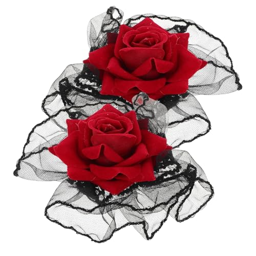 TOGEVAL Manchettes Gothiques en Dentelle sans Doigts Paire Noire Motif Rose Accessoires Cosplay et Halloween Bracelet Volant Ajustable pour Mariage et Déguisement Style Lolita Fleur