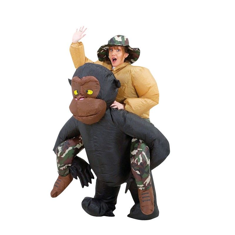 Déguisement dexplorateur à dos de dinosaure pour soirée à thème - Adulte - Beige - Tissu - Gonflable