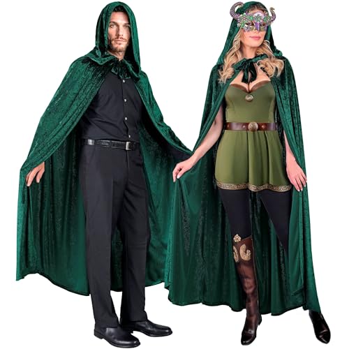 TIMESETL Cape à Capuche Noire Cape Halloween Déguisement Halloween Adulte Cape de Sorciere Longue Costume Halloween Adulte Cape Vampire Adulte Homme Femme, Déguisement de Sorcière pour Adulte, 130CM