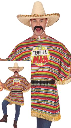 FIESTAS GUIRCA Déguisement Tequila Man - Costume drôle pour homme avec poncho - Enterrement de vie de garçon mexicain - Déguisement homme taille L
