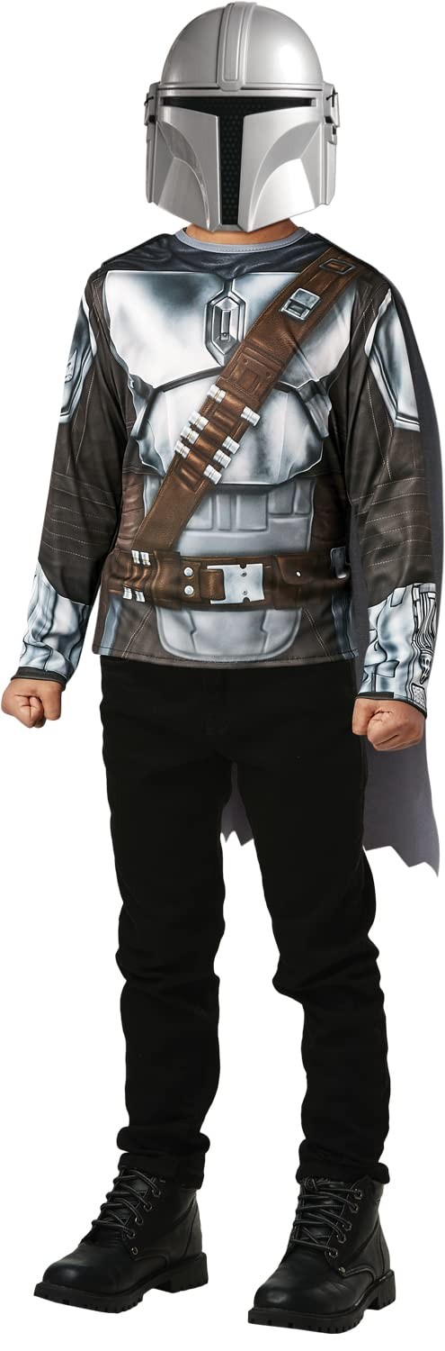 RUBIE'S STAR WARS Officiel - Déguisement Enfant The Mandalorian - Taille Unique 5-8 ans - Costume avec Top Imprimé Imitation « Armure », une Cape Attaches Velcro et un Masque en PVC