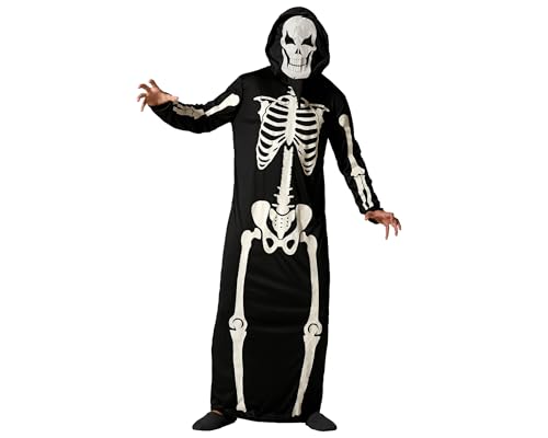 Atosa | Déguisement Squelette Adulte Homme | Costume phosphorescent | Déguisements pour Halloween, Carnaval| Comprend une combinaison longue avec capuche | Confortable, amusant et original | XS-S