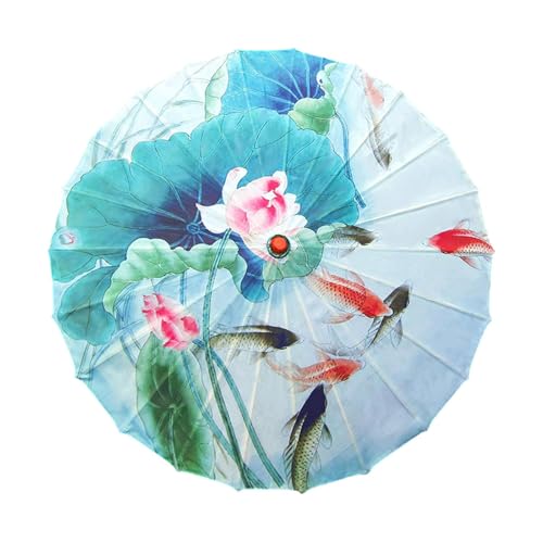 Baoblaze Parapluie en Papier huilé de Chinois, Parasol Oriental avec Manche en Bois, 82 cm (32,28 Pouces), Accessoire de déguisement pour la, Poisson