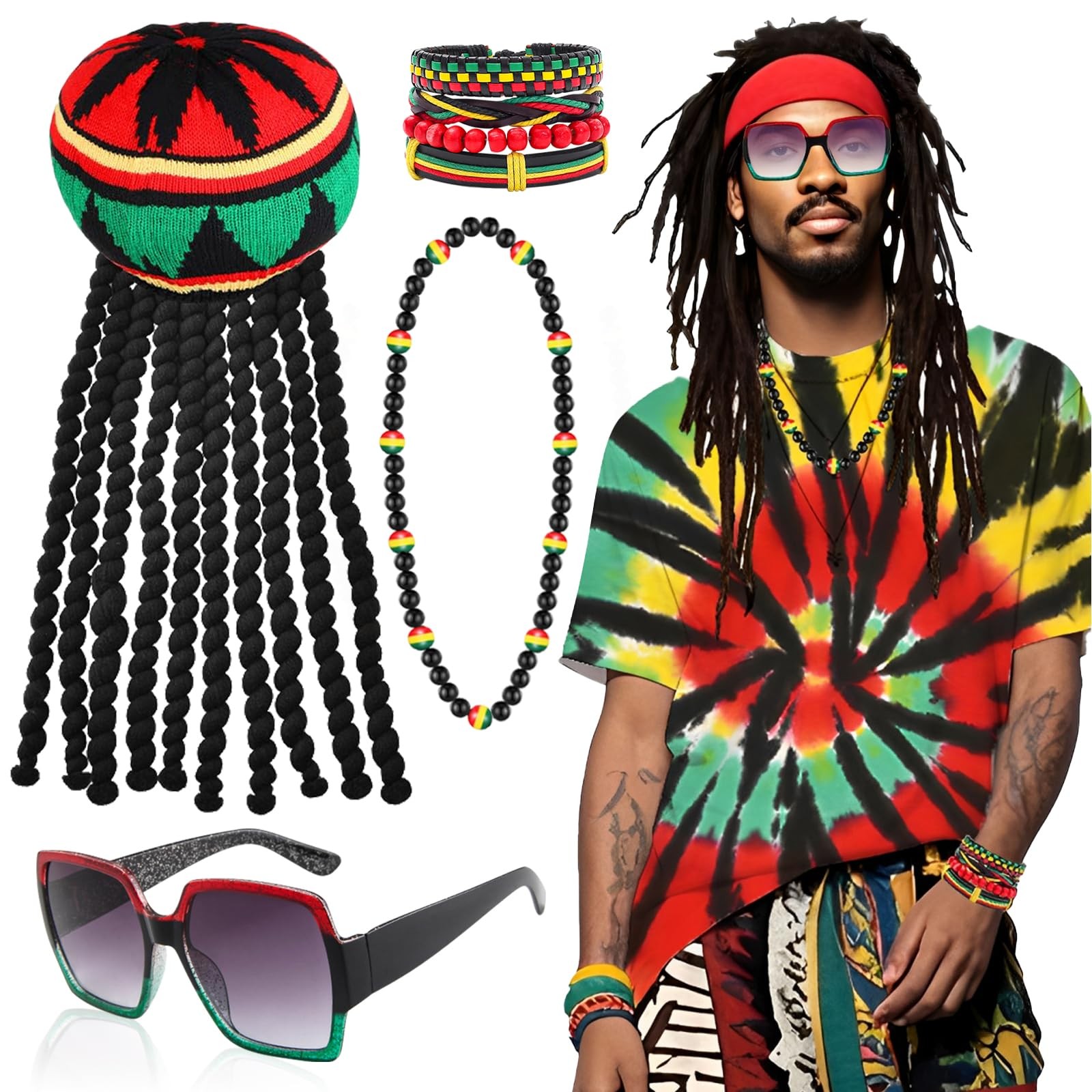 5 Pièces Set Accessoires de Déguisement Rasta, Kit Costume Reggae Jamaïcaine