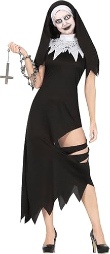 FIESTAS GUIRCA Déguisement de nonne sexy pour femme – Costume de nonne zombie comprenant un voile de nonne et une robe courte de nonne – Costumes d'Halloween pour femme taille L