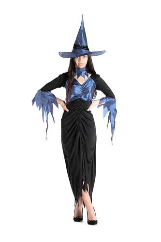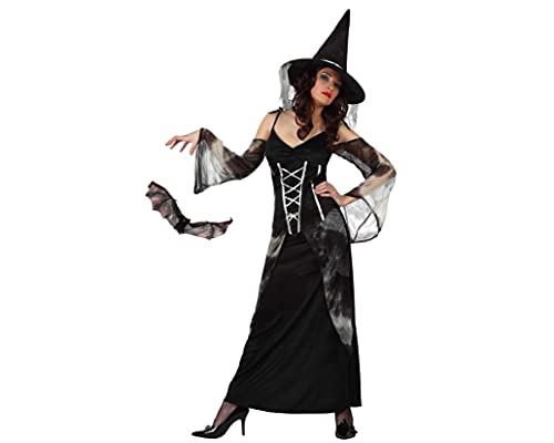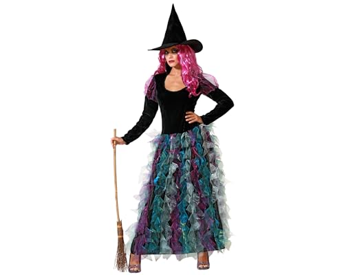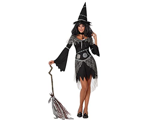 FIESTAS GUIRCA Costume de Sorcière Spirituelle - Déguisement de Sorcière Magique Noire Halloween Femme Taille 42-44 L