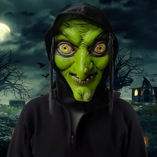 JIMACRO Masque Sorcière Halloween, Masque Sorciere Femme Masque Halloween Effrayant pour Carnaval Fête Déguisement Cosplay Costume Masque Décorations