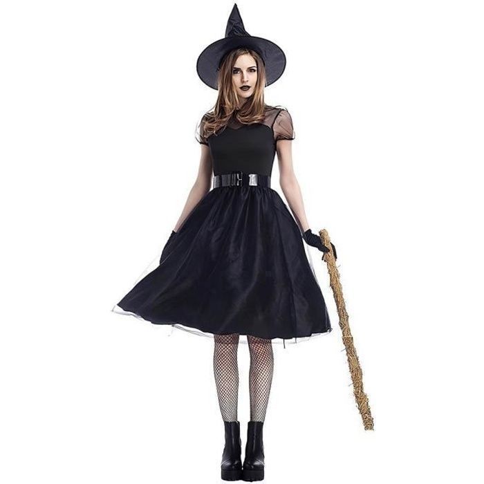 Déguisement sorcière noire femme - Marque inconnue - Robe effet tulle - Ceinture et gants inclus