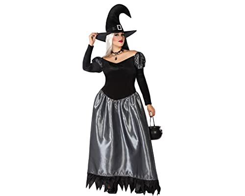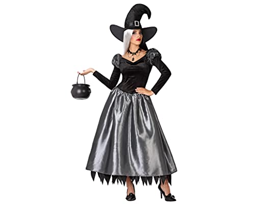 FIESTAS GUIRCA Costume de Sorcière en Toile d'Araignée Argentée - Robe avec Chapeau de Sorcière - Déguisement d'Halloween pour Femme Taille 38-40 M