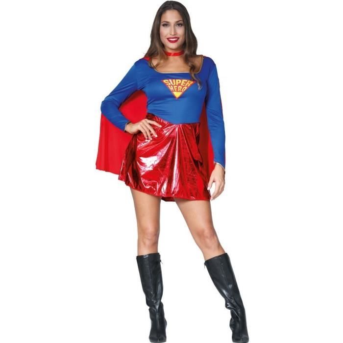 Déguisement de super-héros pour femme - FIESTAS GUIRCA - Modèle Supergirl - Rouge / bleu - Polyester - Intérieur