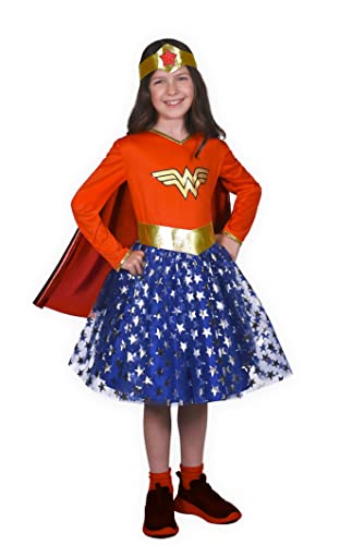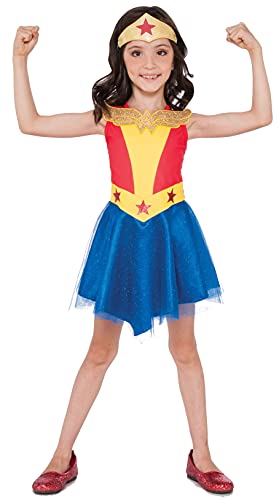 RUBIE'S DC Superhero Girls Officiel - Robe Tutu Wonder Woman - Déguisement Enfant Fille - Costume Bleu, Rouge, Jaune, Tiare - Taille Unique - 4-6 ans - Pour Halloween, Carnaval - Idée Cadeau de Noël