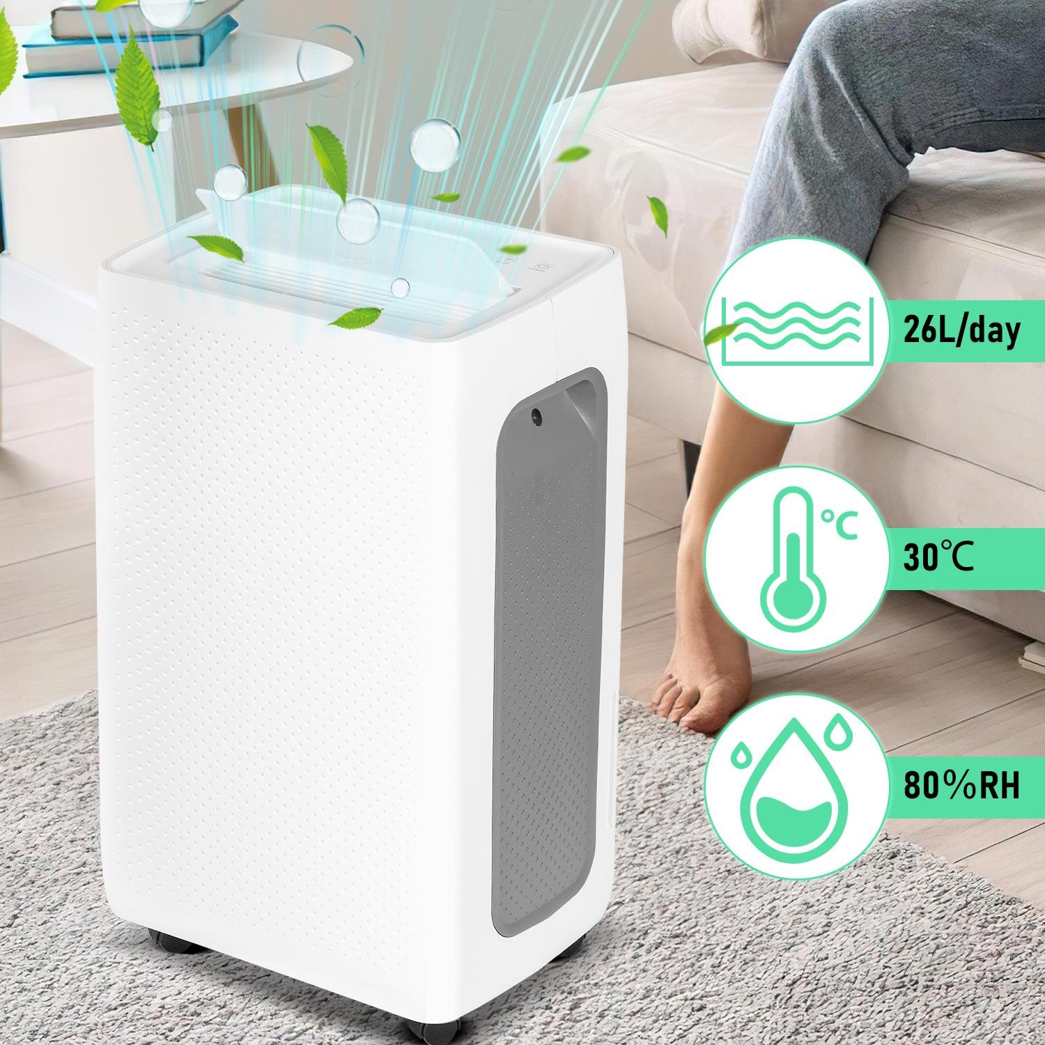 Déshumidificateur d'air Jayseuw 26L/jour avec minuterie 24H, déshumidificateur d'ambiance 4.5L réservoir d'eau Dehumidifier déshumidificateur domestique silencieux pour pièces jusqu'à 30 m²
