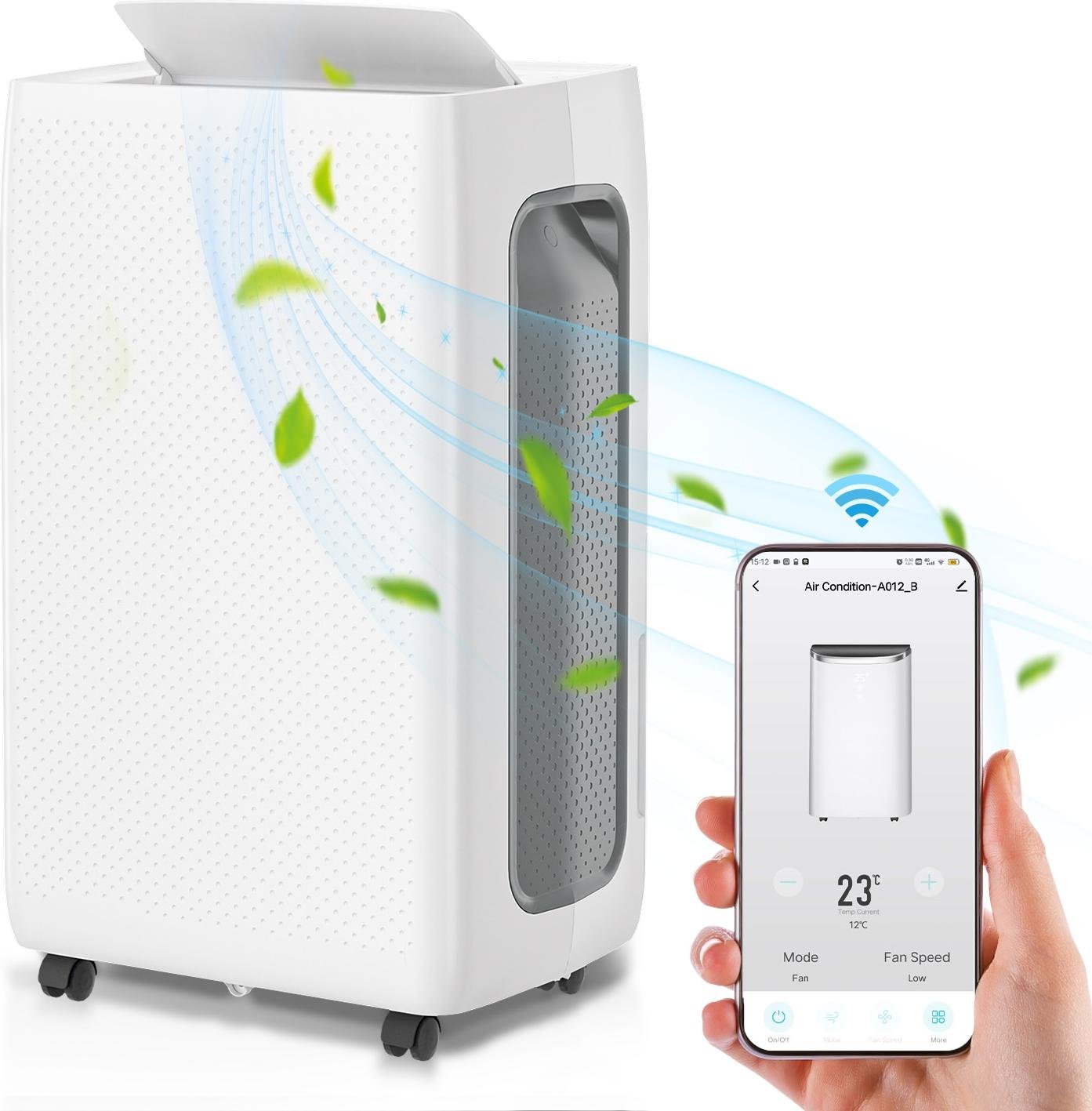 Air Conditioning Unit - Portable Air Conditioner 7000 BTU, 4-in-1 Energy Efficient Cooling & Dehumidifier, Quiet Operation, Digital Display, Window Kit, 24-Hour Timer, Covers Up to 215 sq.ft (20㎡)