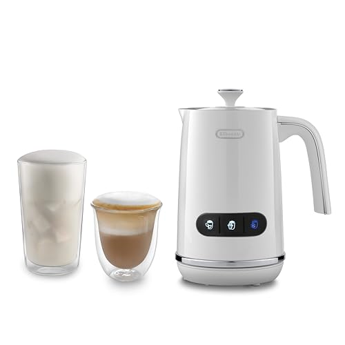 De'Longhi LatteMix EMF3.M Mousseur à lait électrique pour lait chaud & froid & alternatives végétales Nettoyage facile Couvercle transparent 3 boutons 250 ml Blanc