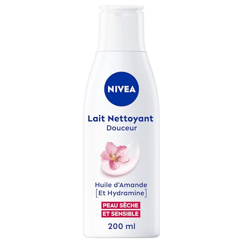 NIVEA - Lait Démaquillant Visage Douceur - Efficacité Waterproof - Démaquille, Hydrate & Apaise - Sans Assécher - Huile D'Amande Douce Et Hydramine® - Vegan - Peaux Sèches & Sensibles - 200 ml