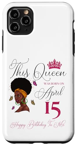 Cette Reine est née Le 15 Avril Afro Girl Cheveux naturels Coque pour iPhone 11 Pro Max
