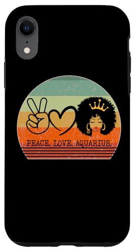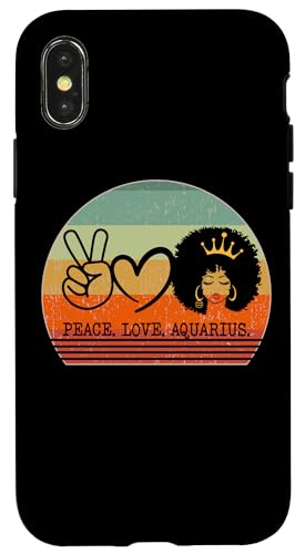 Paix Amour Verseau Reine Zodiaque Afro Cheveux Anniversaire Coque pour iPhone X/XS