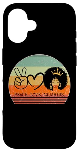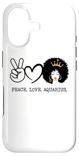 Paix Amour Verseau Reine Zodiaque Afro Cheveux Anniversaire Coque pour iPhone 16