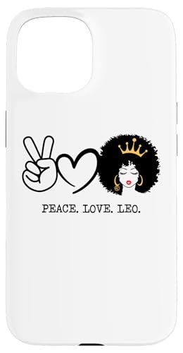 Paix Amour Lion Reine Zodiaque Afro Cheveux Anniversaire Coque pour iPhone 15