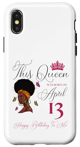 This Queen Was Born on April 13 Afro Girl Cheveux naturels Coque pour iPhone XS Max