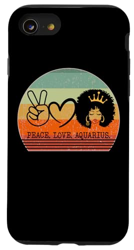 Paix Amour Verseau Reine Zodiaque Afro Cheveux Anniversaire Coque pour iPhone SE (2020) / 7/8