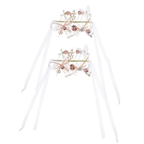 TOPBATHY 2 Pièces Bracelet de Fleurs pour Mariage Décoration avec Perles et Accessoire pour Mariée et Demoiselle Lot de Rose pour et Occasions Spéciales