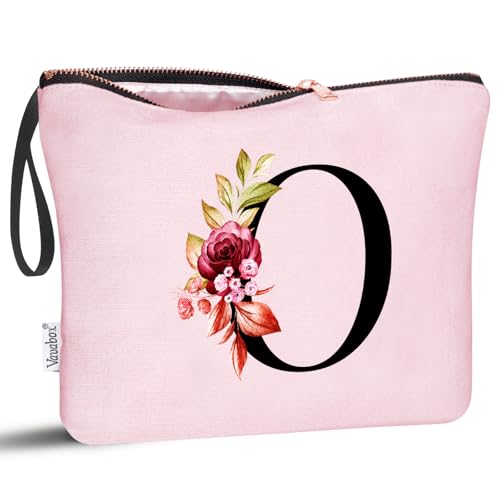 Vavabox Trousse de Toilette personnalisée A à Z, Tissu Premium & Fermeture éclair Robuste, Cadeau Parfait Femme, idée Cadeau Fille Unique, Cadeau Unique pour mariée ou Demoiselle (O, Rose)
