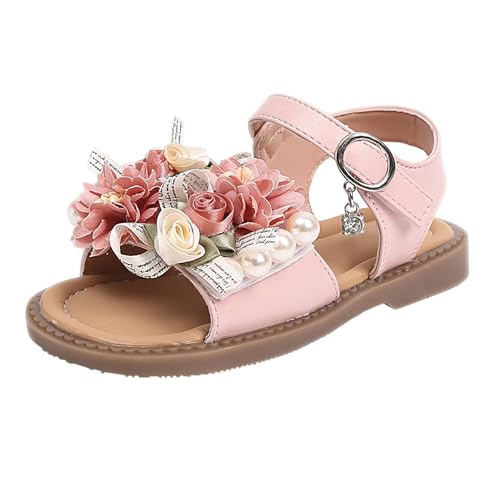 Sandales pour enfant fille avec fleurs – Princesse Chaussures d'été Vacances Plage Chaussures de plage Loisirs Plates Sandales antidérapantes pour mariage, anniversaire, demoiselle d'honneur, Rose, 34
