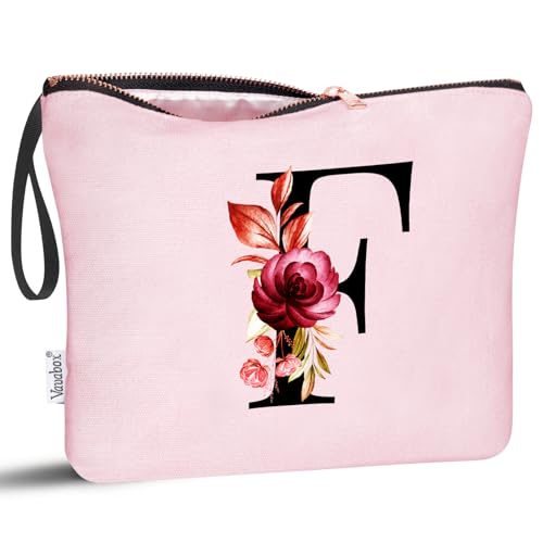 Vavabox Trousse de Toilette personnalisée A à Z, Tissu Premium & Fermeture éclair Robuste, Cadeau Parfait Femme, idée Cadeau Fille Unique, Cadeau Unique pour mariée ou Demoiselle (F, Rose)