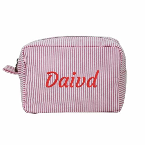 Zhongzhi Trousse de maquillage personnalisée en seersucker avec nom brodé, trousse de toilette personnalisée, sac de maquillage pour demoiselle d'honneur, rose