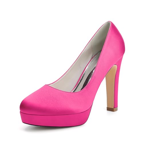 MlYJmer Escarpins à Talons en Satin pour Femmes, à Plateforme, Chaussures de Mariage, de mariée et de Demoiselle d'honneur,Rosé,40 EU