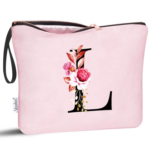 Vavabox Cadeau Trousse de Toilette Personnalisée A à Z, Tissu Premium & Fermeture Éclair Robuste, Idée Cadeau Fille Unique pour Mariée ou Demoiselle (L, Rose)