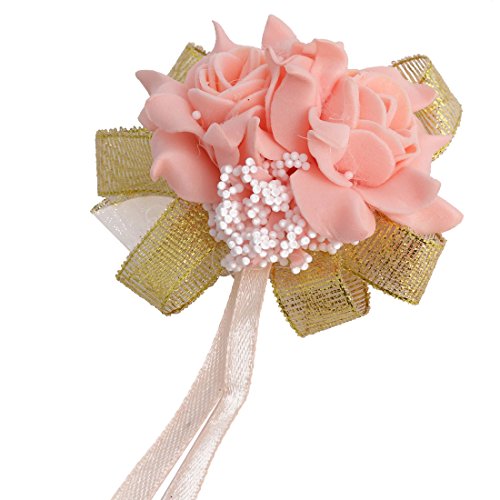 HLTYGWX Corsage de Poignet à la boutonnière pour Filles, Bracelet Floral, Ruban Rose, Demoiselle d'honneur, marié, Fleurs à la Main, boutonnières de Mariage, Bal de Mariage (Couleur : F) (Taille