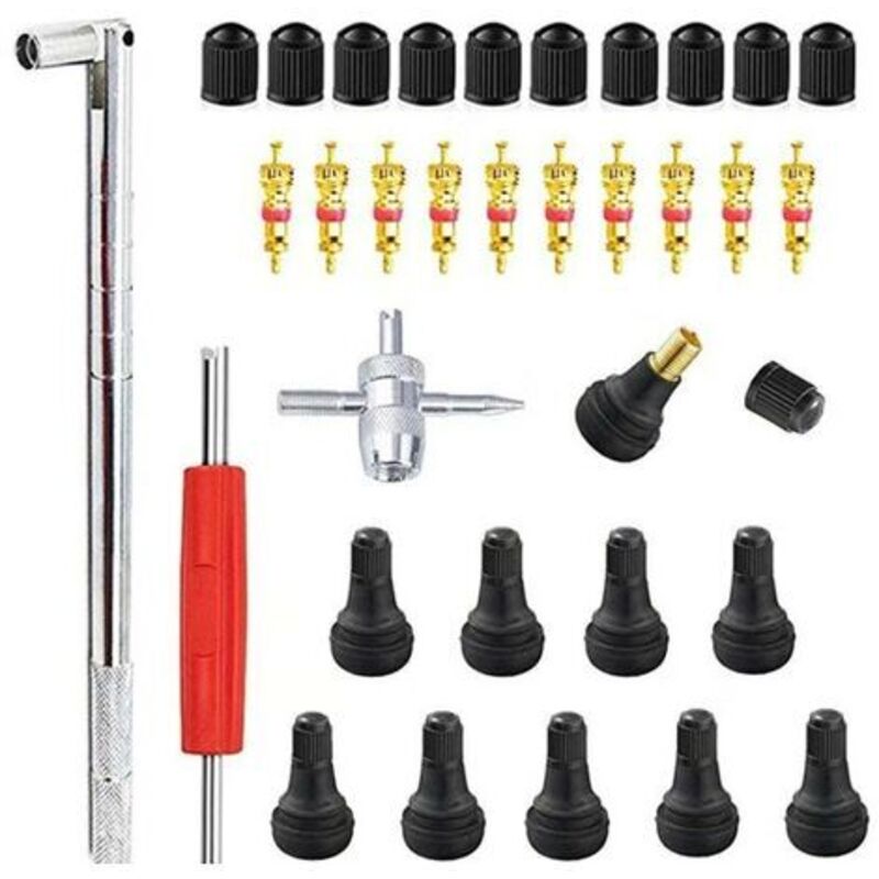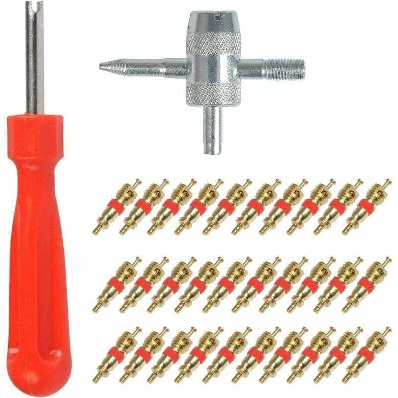 33Pcs Demonte Valve Pneu Outil, Valve Core Remover pour Voiture Remplacement, Valve Core 10pcs, 4-1 Outil de Réparation de Valve de Pneu - Démonte