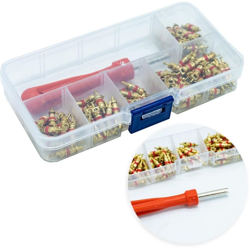 Tigrezy - 100Pcs Demonte Valve Pneu Outil Démonte obus de Valve Outil de Reparation avec 100Pcs Valve Core pour Voiture Remplacement, 4-1 Outil de