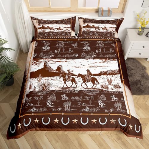 Homemissing Western Housse De Couette 220 x 240 Cm Cheval Denim Parure De Lit Garçon Filles Adolescent Rural Western Decor Country Wild Down Jacket White Ensemble Literie